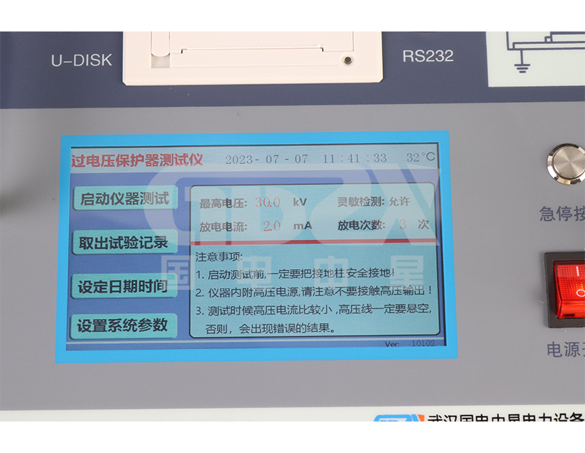 1.儀器采用波形檢測和付立葉變換方式時刻監測放電電流,當監測到放電電流時,立即記錄此刻高壓并在0.2s內切斷高壓電源。測試結果精度高,便于實現自動化測量。